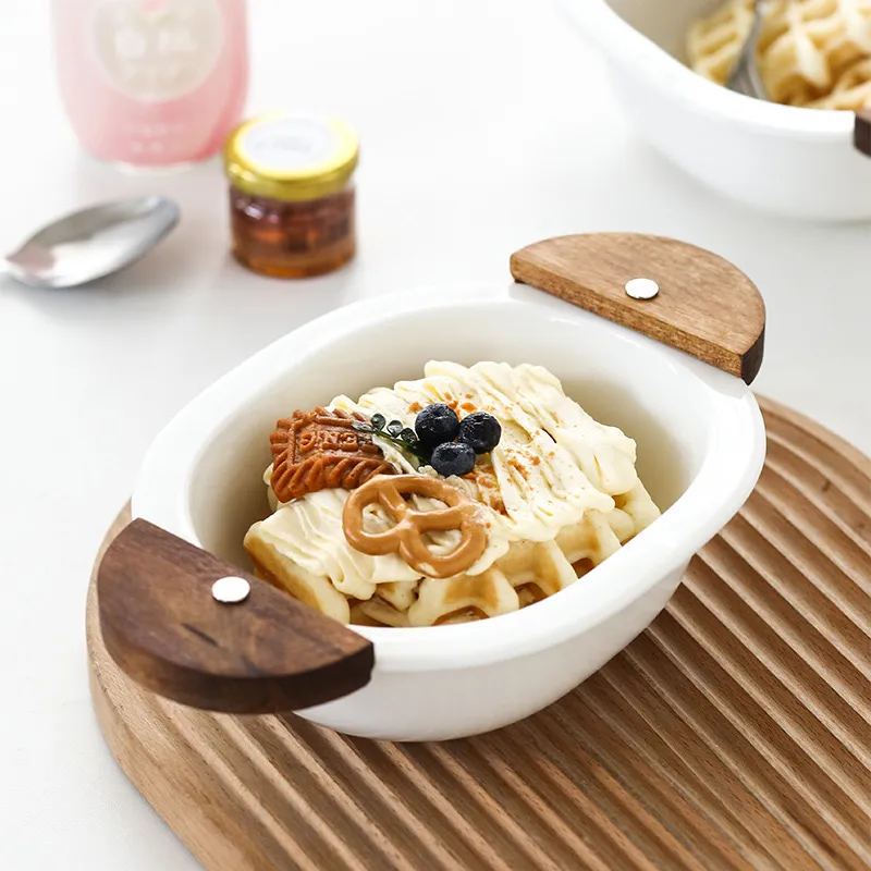 Korean Bear-Shaped Ceramic Bowl, Heat-Resistant Double Handle Kids Bowl
