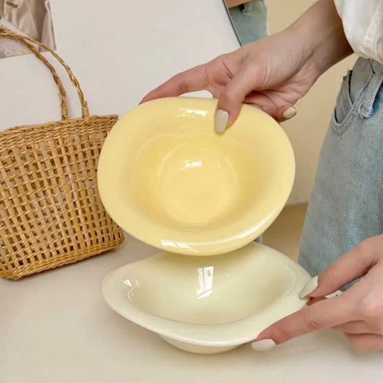 Asymmetrical Ceramic Soup Bowl, Artistic Fruit and Salad Serving Dish
