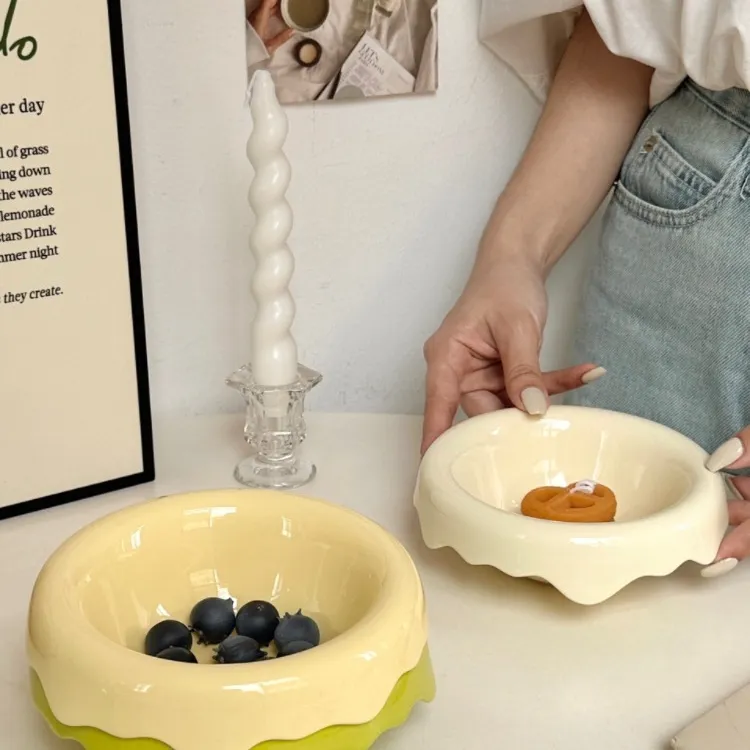 Large Nest-Shaped Eggshell Ceramic Bowl, Creative Dry Ice Fruit Salad Dish