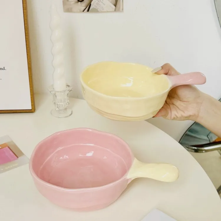 Color-Block Handle Bowl, Single Handle Mixing Bowl for Rice and Salad