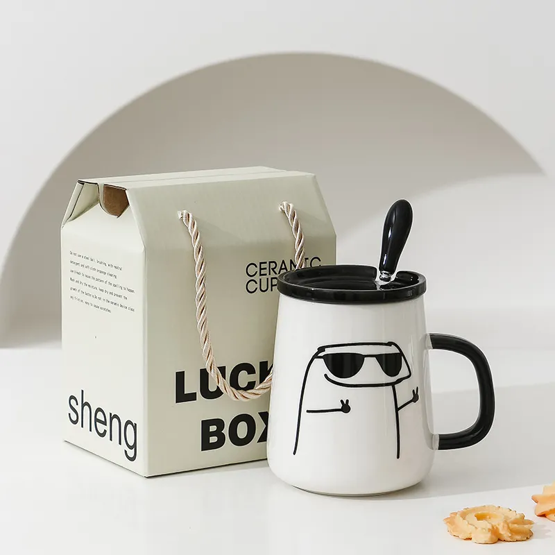 Creative Ceramic Mug Gift Set with Lid and Spoon, Simple Design Present